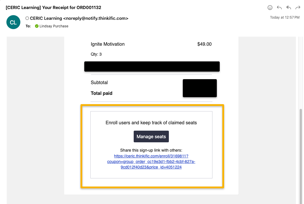 Once you submit your response, you will be provided with a sign-up link for your users. You will also receive a link to your Seat Manager page and the sign-up link for your users in your receipt email.
