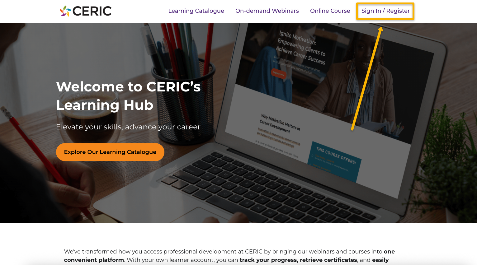 CERIC’s Learning Hub brings our on-demand webinars and self-paced online courses into one convenient platform. With your own learner account, you can track your progress, retrieve certificates, and easily browse and enrol in webinars and courses.